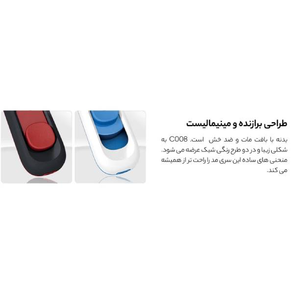ازآنجا که در طول روز شاید چندینبار نیاز باشد که از فلشمموری خود استفاده کنید، طراحی آن حایز اهمیت است. فلشمموری ایدیتا مدل C008 از این قاعده مستثنی نیست. این فلشمموری از بدنه پلاستیکی با کیفیت بهره میبرد که به دلیل رنگ غیربراق آن در برابر جذب اثر انگشت مقاوم است. در نگاه اول استفاده از شیوه دو رنگ بودن این فلشمموری شمارا به سمت خود جذب میکند. رنگ دوم این فلشمموری باعث زیباتر شدن این محصول شرکت ایدیتا شده است. به کمک قسمت محافظی که طراحان شرکت ایدیتا روی این فلشمموری طراحی کردهاند، با حرکت رو به جلوی این قسمت توسط انگشت شصت خود میتوانید اقدام به بیرون آوردن درگاه آن کنید. این قسمت بسیار ساده و روان قابل استفاده است. البته وجود این قسمت در این فلشمموری نگرانی را برای کاربران به وجود میآورد که پس از استفاده طولانی مدت از آن باعث خراب شدن این قسمت شود. باید به این نکته اشاره شود که از کار افتادگی این بخش صرفا برای استفاده نامناسب و غیرصحیح است. در قسمت انتهایی این فلشمموری شیاری برای قرار دادن بند نگهدارنده وجود دارد که در صورتی که نگران گم شدن فلشمموریتان هستید، به شما پیشنهاد میکنیم که از این قسمت ارایه شده روی C008 استفاده کنید.